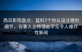 西瓜影院盘点:猛料7个你从没注意的细节,当事人上榜理由罕见令人爆炸性新闻