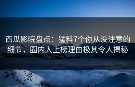 西瓜影院盘点:猛料7个你从没注意的细节,圈内人上榜理由极其令人揭秘